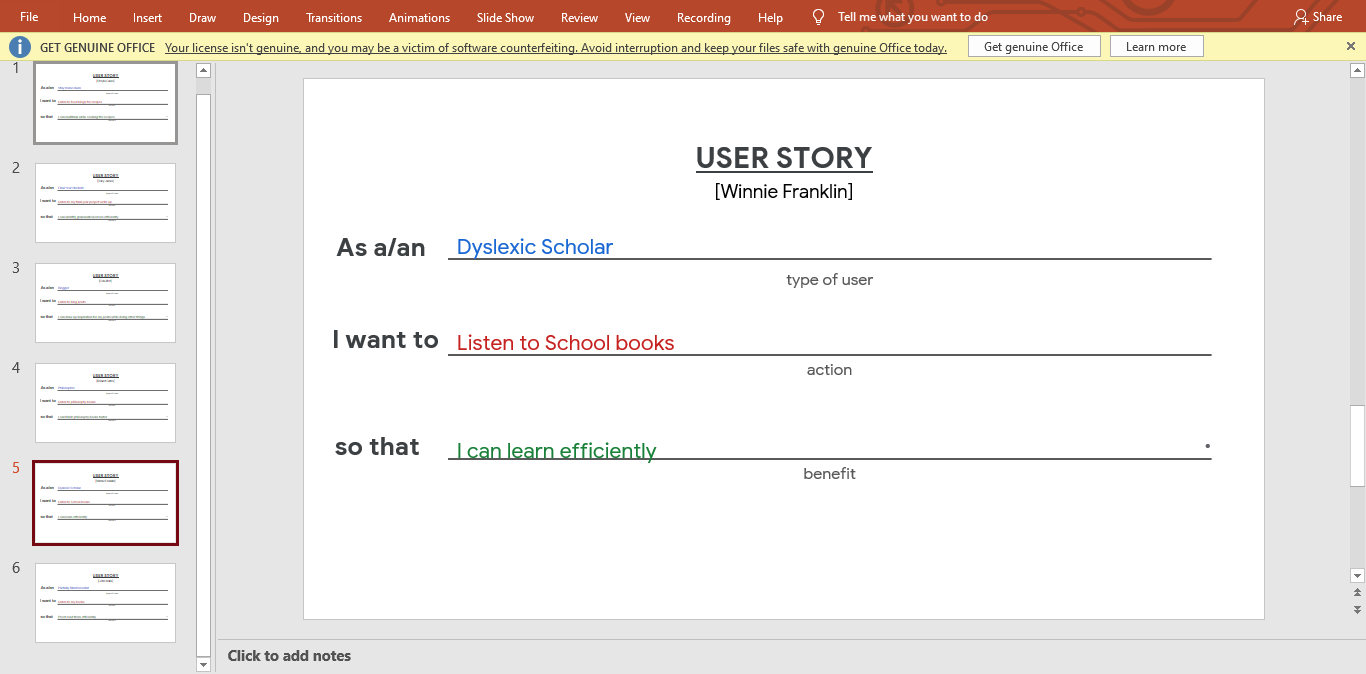 One good tool I use for my ideation process is the use of user stories. It helped me to put myself I the shoes of users while designing. Combining this with the research really spikes my creative view of apps when designing because I know exactly where to start designing from graphically. For this project I created 6 user stories.