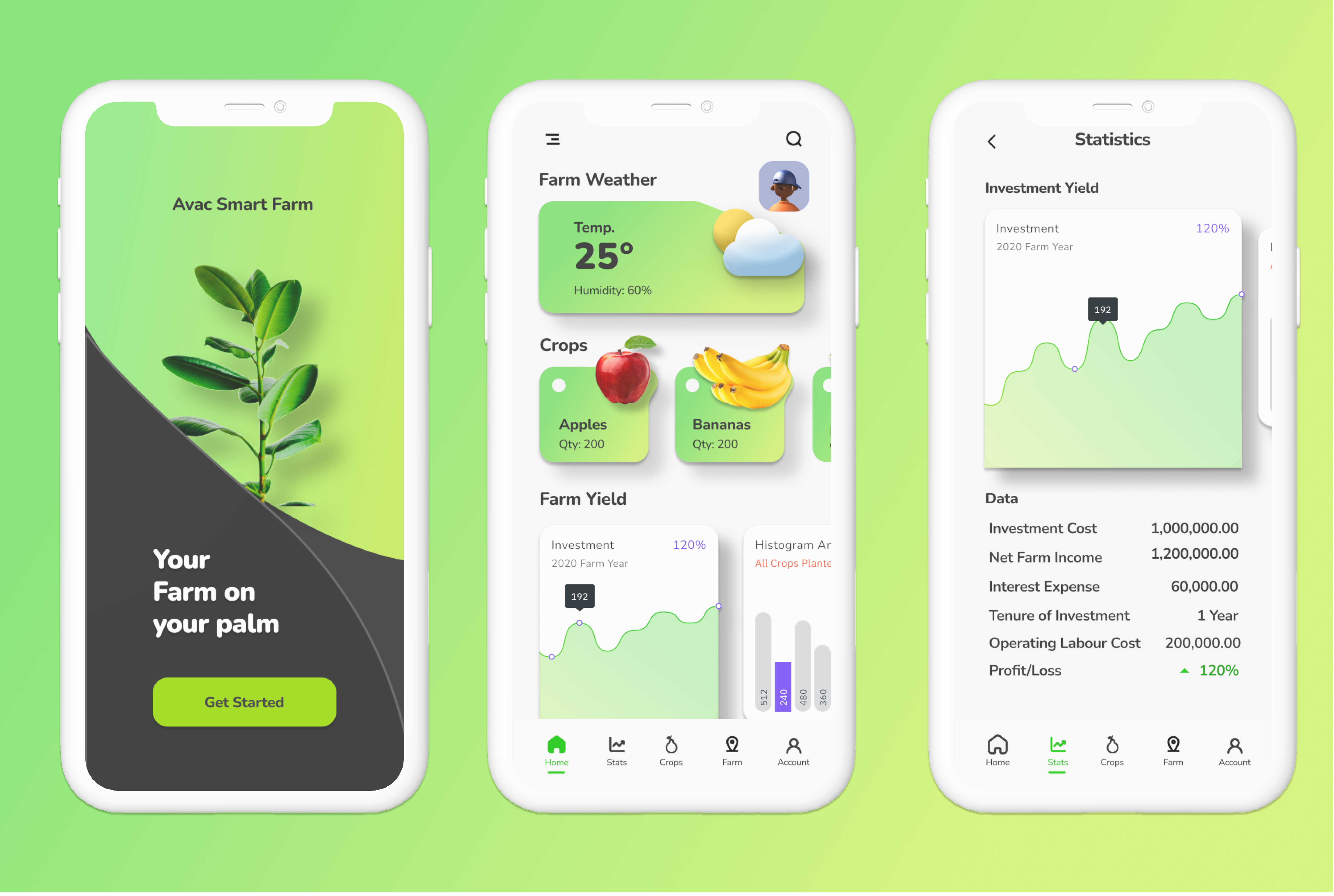 Microscale, a tech company in Sub-Saharan Africa made an initial design of the AVAC Smart Farm as a Frame work, but the UX Engineer for the project needed a UI Designer to help convert their first design to a more user friendly, top notch design and also added extra pages to help users get a better experience of the App. This is where I come in.